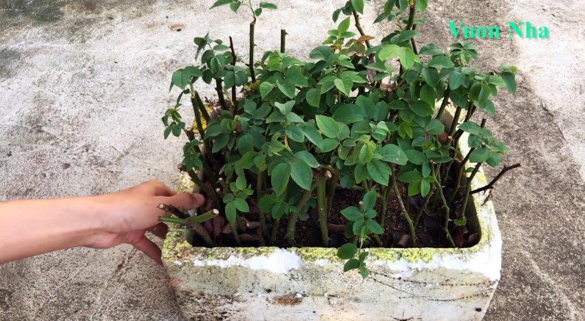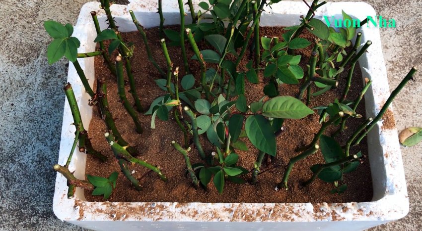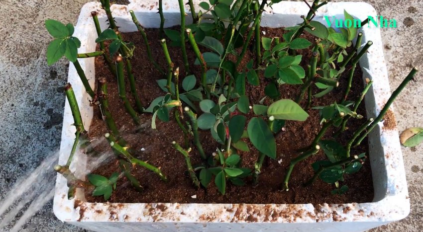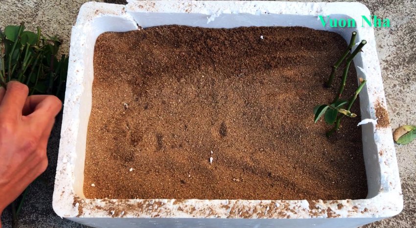 В него втыкаются черенки косыми срезами вниз, и обильно заливаются водой.