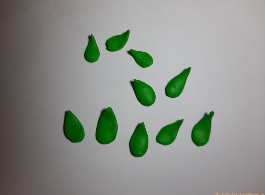 3. Затем нужно скатать шарики, чуть удлиняя с одной стороны, придавая форму капельки.