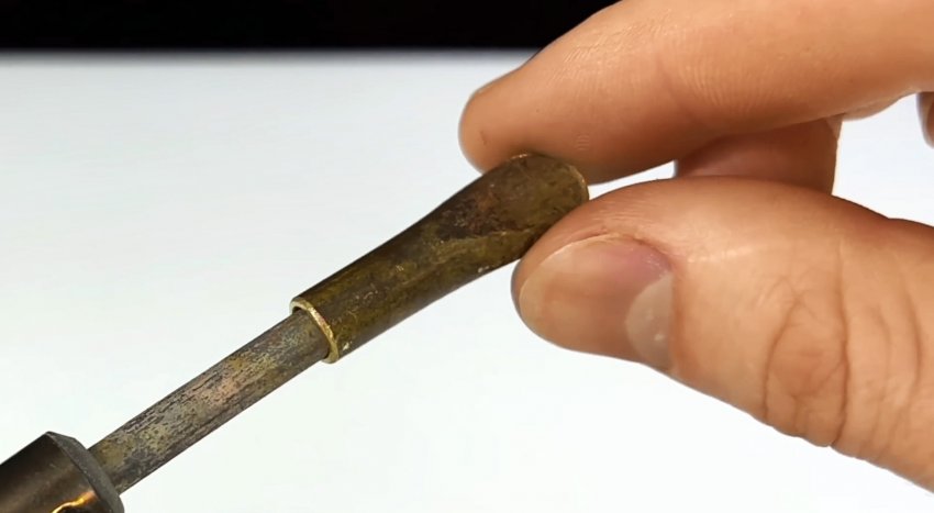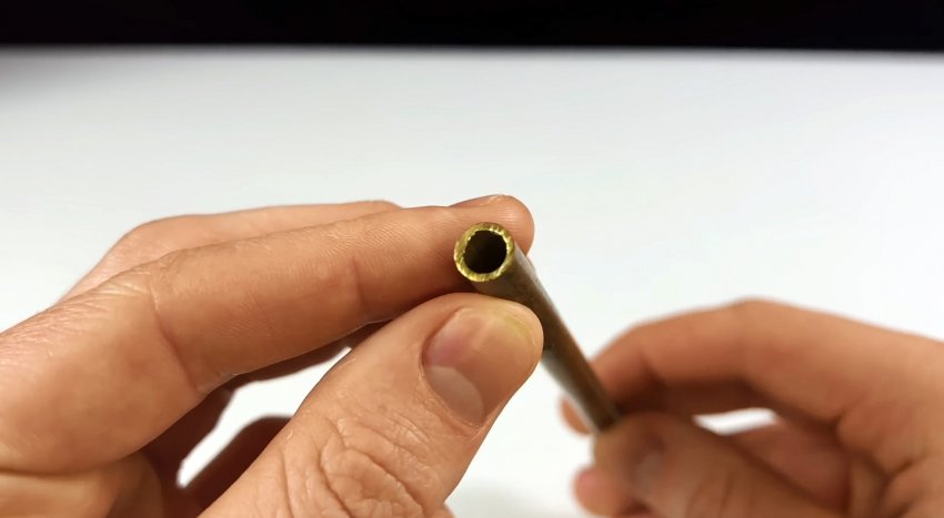 Для этого ее разрез зачищаем напильником, шлифуем наждачкой и расплющенный между губками тисков конец трубки скругляем напильником и шлифуем наждачкой.