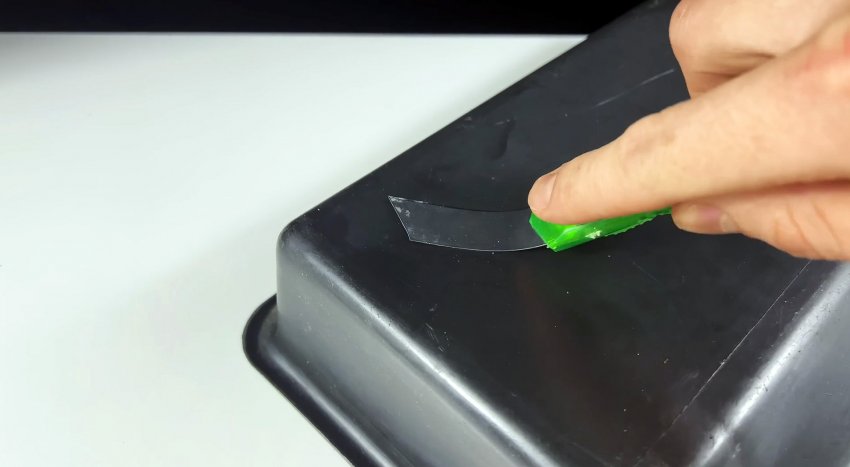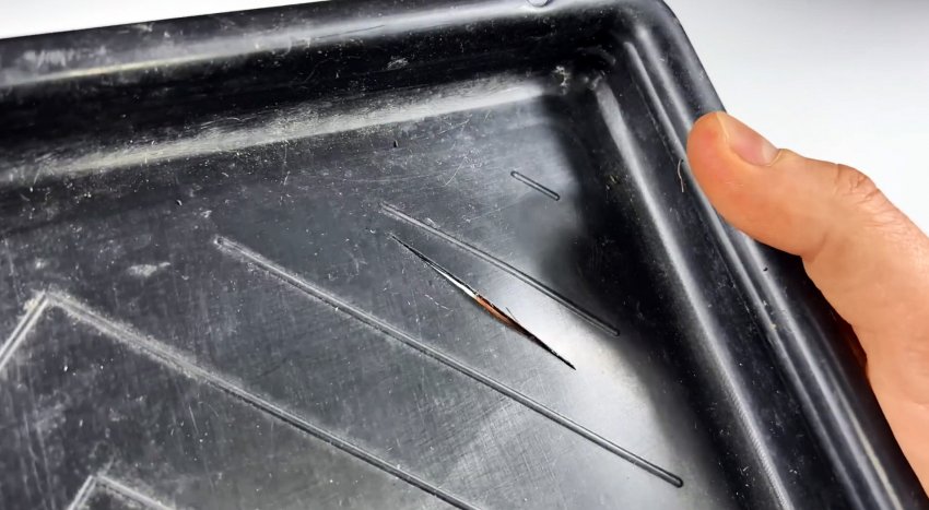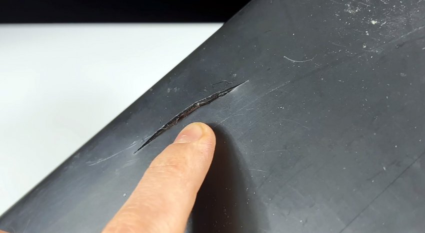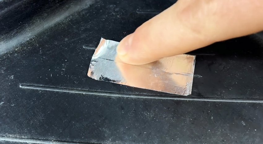 На трещину в пластике с лицевой стороны наклеиваем алюминиевую фольгу.