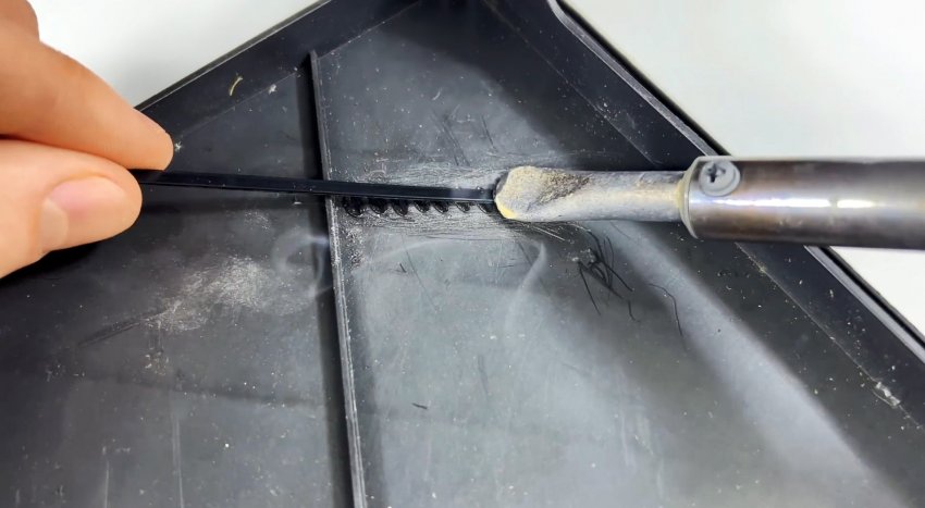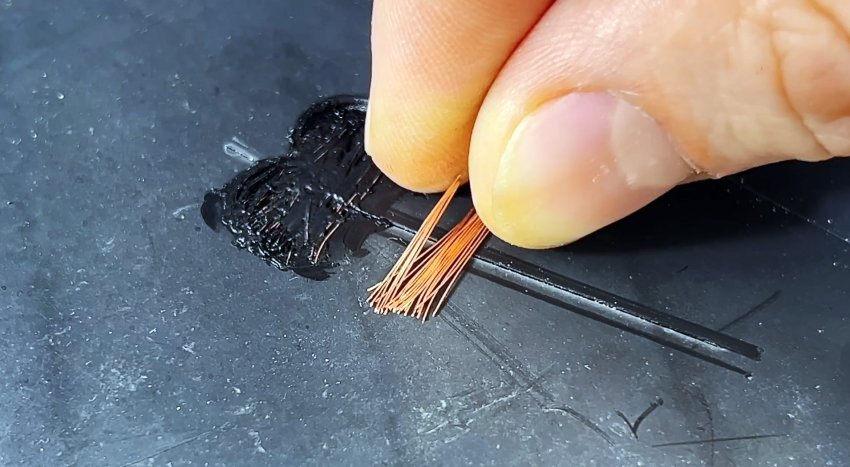 Трещину в пластике можно устранить, размещая поперек дефекта с тыльной стороны короткие отрезки многожильного медного провода с удаленной изоляцией. Остается лишь их впаять в пластик с помощью шляпки разогретого гвоздя.