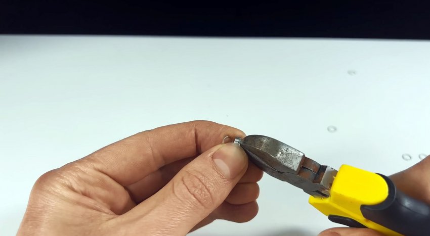 На кольца наносим жидкий пластик, расплавляя пластиковый хомут.