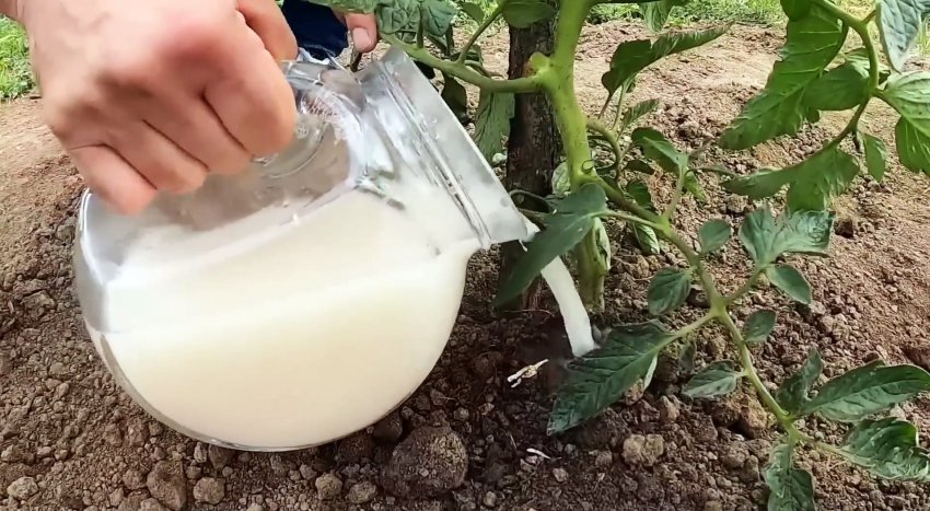 Отличной подкормкой служит свежее не кипяченое молоко. 100 мл молока разбавляем 1 литром воды и хорошо взбалтываем.
