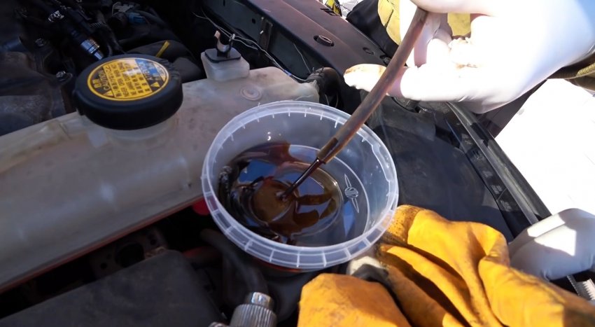 По цвету она очень темная и густая из-за растворившихся в ней масло-сажевых отложений.