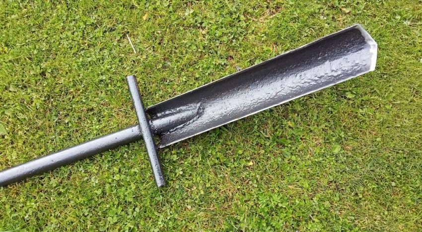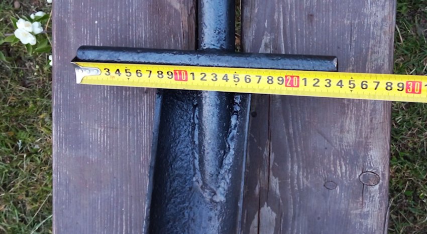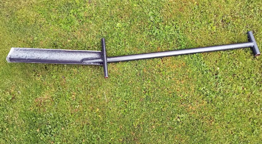 Конструкция лопаты оказалась вполне себе удачной, но лучше использовать тонкостенные трубы, чтобы инструмент получился облегченным. Лопату можно немного модернизировать, если снизу упора для ноги приварить 2 ножа, которые будут разрезать газон и, тем самым, облегчать работу и делать ее аккуратней.