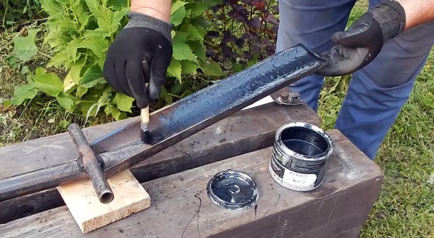 Производим зачистку сварных швов, подготавливаем поверхности лопаты к покраске и окрашиваем краской по металлу, например молотковой.