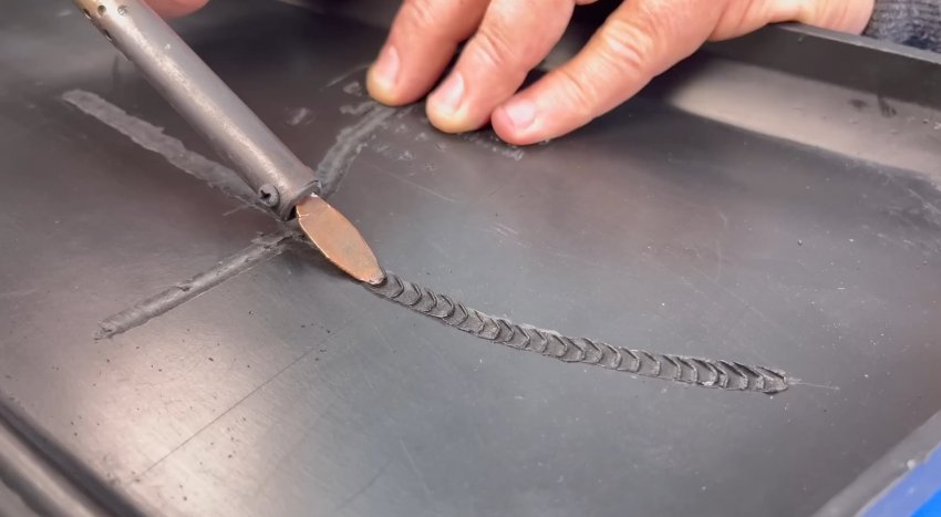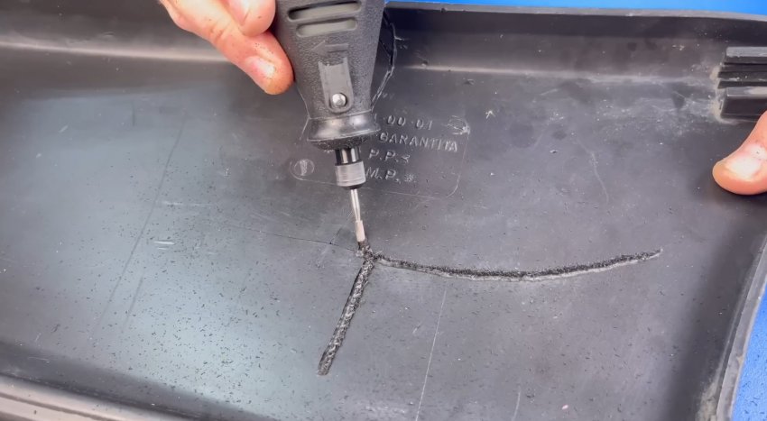 Заменяем узкое жало паяльника на широкое и, размягчая по трещинам пластик, выполняем поперечные «ребра жесткости», которые укрепляют части изделия по сторонам трещин.