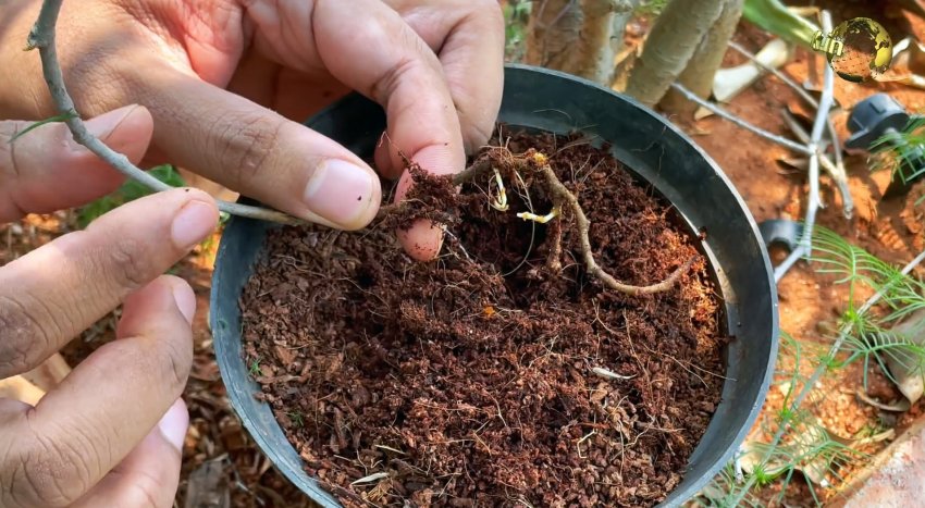 Также можно взять кончик молодого побега, и прикопать его сбоку основного растения. В итоге на краю появятся корешки, и затем побег пробьется над землей с новыми листиками. Позже его можно будет отрезать от материнского растения, и высадить отдельно.