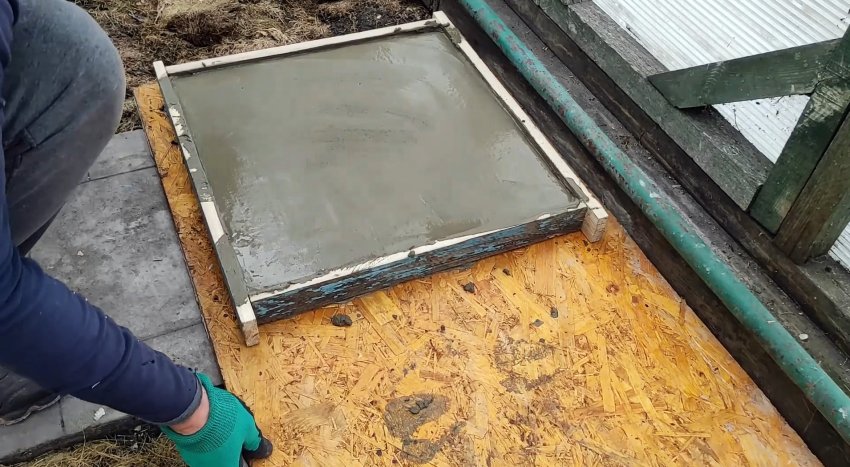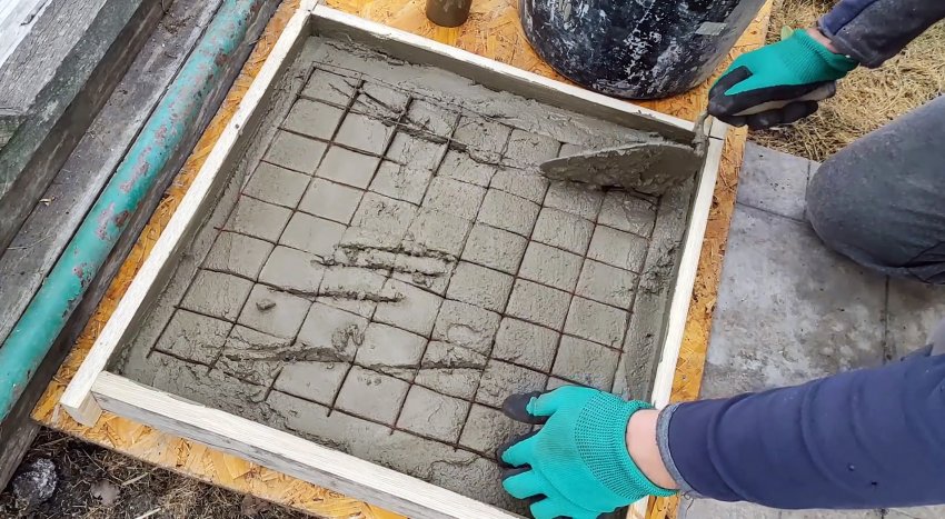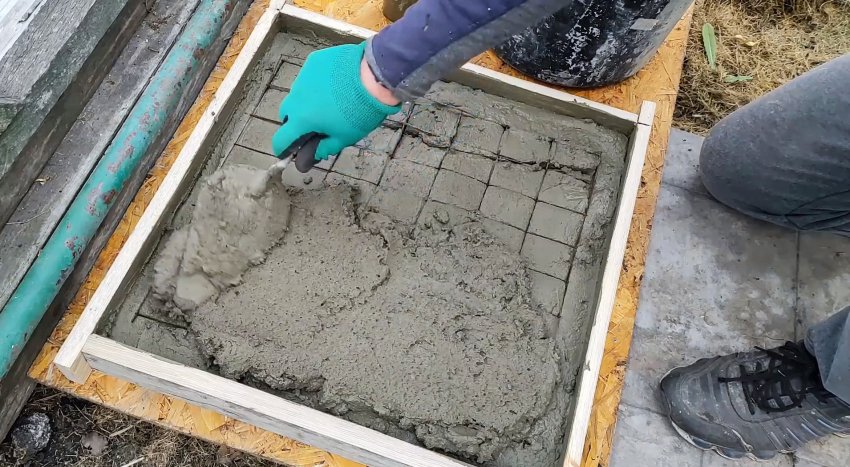 Под нее из рейки собирается на саморезы квадратная опалубка. Плитка должна входить в нее впритирку.