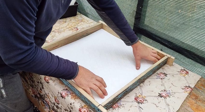 Когда бетон застынет, переворачиваем форму и разбираем опалубку, выкрутив саморезы. Если действовать именно так, то пенопластовая подложка останется целой, и ее можно будет использовать повторно.
