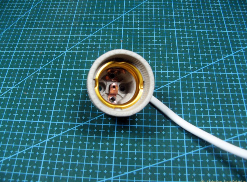 Напротив патрона выпиливаю отверстие, даже не промахнулся. Лампу легко заменить. У меня лампа на 100 ватт, можно поставить на 60.