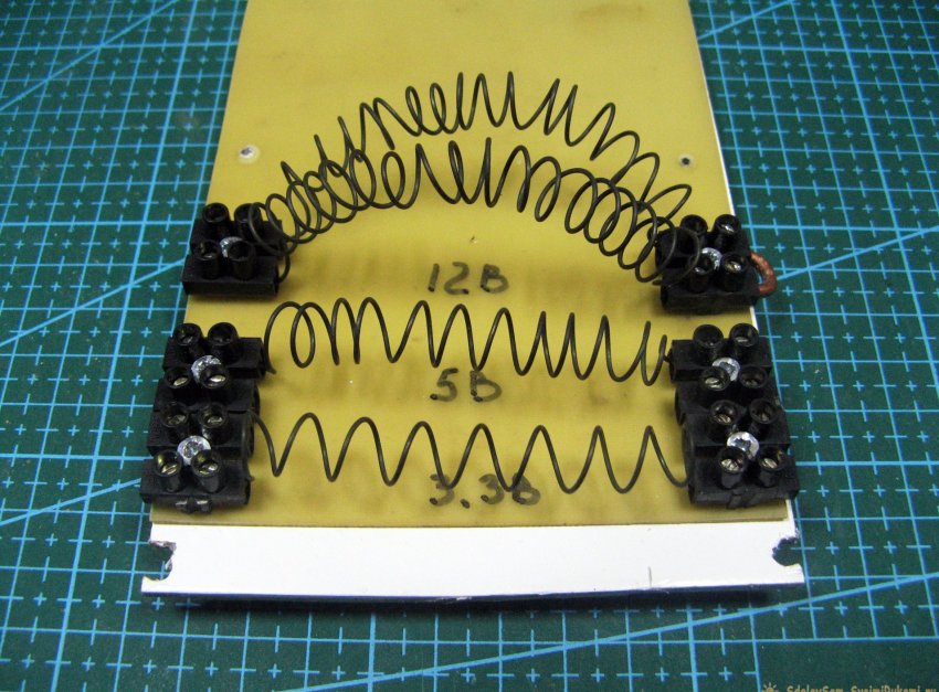 Отмерил и накрутил спирали около 4 ампер. По каждому из напряжений: 3.3; 5; 12 вольт. Сопротивление можно узнать по закону Ома.