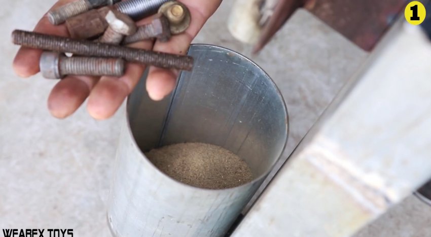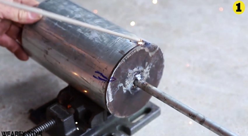 Заглушкой с прутком нужно заварить галтовочную камеру, которая представляет собой отрезок трубы диаметром 100 мм длиной 300 мм.