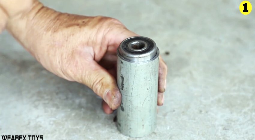 Далее берется отрезок дюймовой трубки длиной 100 мм, и по ее краям запрессовываются подшипники.