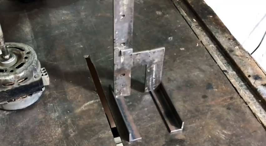Из полосы сваривается h-образная станина для роликов. Ее нужно просверлить, чтобы прикрутить к двигателю.