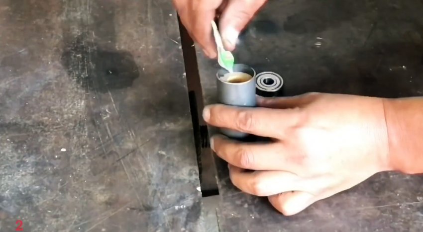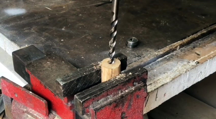 Ведомый ролик делается немного сложнее. Нужно подготовить отрезок трубы диаметром 40-50 мм, равный по ширине ведущему ролику. В нее вклеивается деревянная втулка. Предварительно она просверливается. Важно, чтобы длина втулки была меньшей, чем трубки. Это позволит запрессовать с боков по подшипнику.