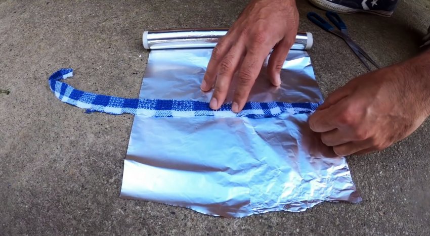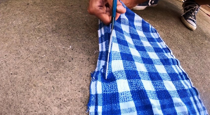 От ветоши, хорошо впитывающей воду, отрезается полоска ткани.
