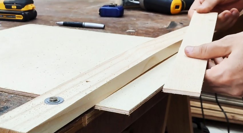 Передний делается из двух планок, чтобы не перекрыть пропил для пилочки.
