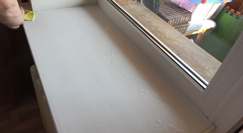 Желтизна должна отмокать не менее 5-10 мин. После этого перекись стирается. Она дает заметный отбеливающий эффект. После такой обработки подоконник будет выглядеть как новый.