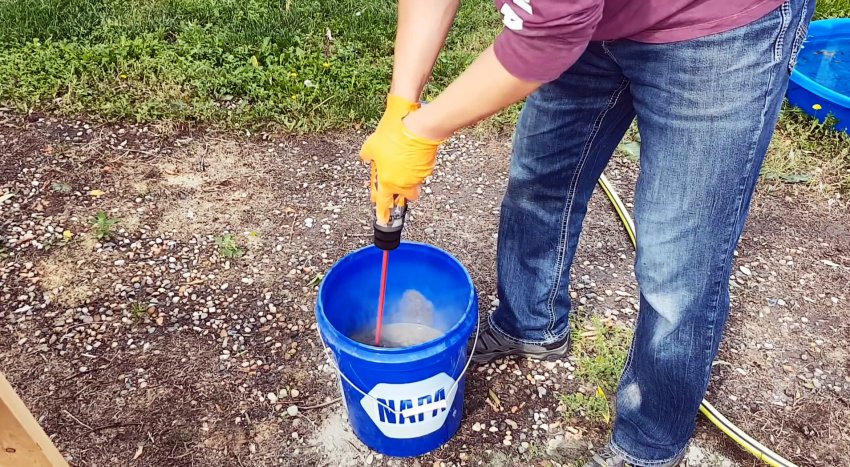 Затем замешивается бетон. Можно просто смешать цемент, песок и щебень в пропорции 1:2,5:3, или применить покупную смесь для стяжки пола.