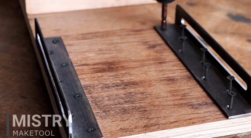 Столик просверливается напротив пазов.