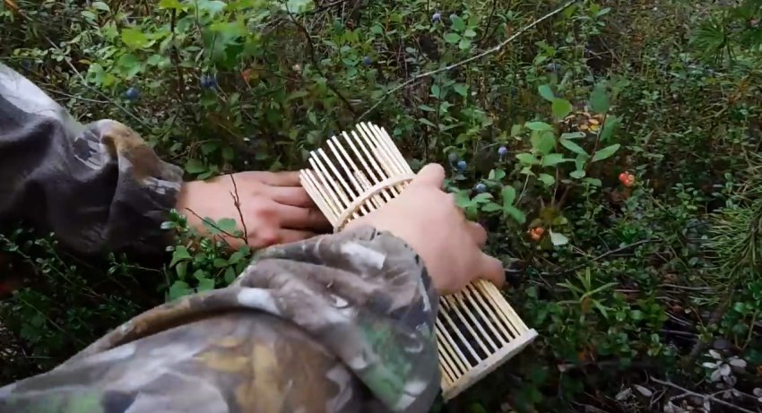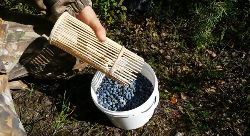 С этим устройством получится нарвать намного больше, чем руками. В дальнейшем, чтобы убрать собранные вместе с ягодами листья и обломки веток, достаточно залить все водой, и мусор всплывет.
