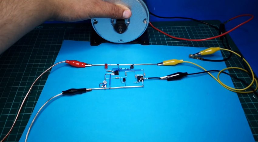 Теперь, если затормозить вал двигателя пальцем, в цепи «просядет» напряжение и устройство отключит двигатель, тем самым защитив его и источник питания.