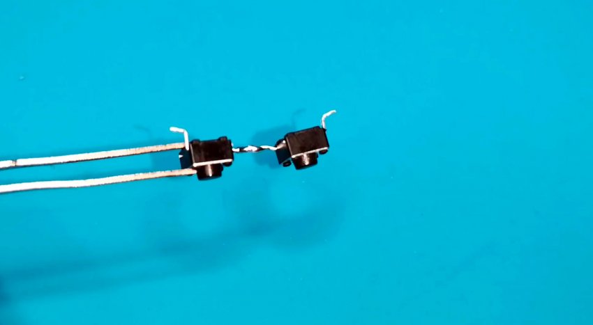 Соединяем кнопки последовательно и припаиваем.