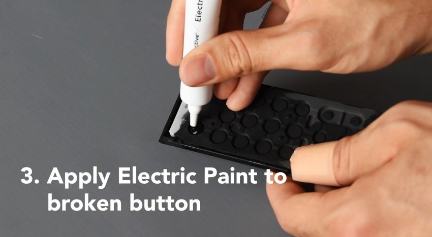 Также протираем спиртом все кнопки с обратной стороны. Наносим токопроводящий клей на нерабочие кнопки.