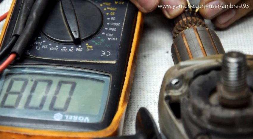 Также нужно проверить сопротивление между ламелями на якоре. Оно должно быть одинаковым. Сразу же проверяется пробой с обмоток на корпус. Если якорь сломан, его проще всего заменить новым.