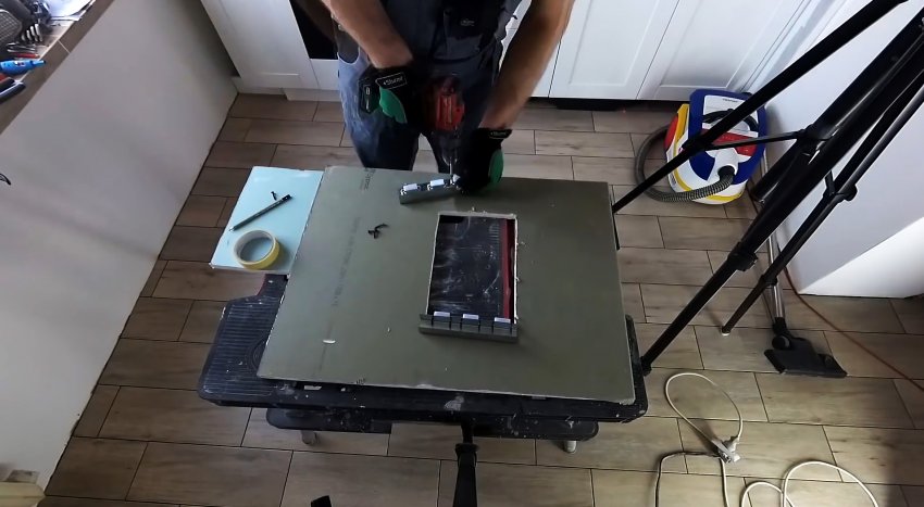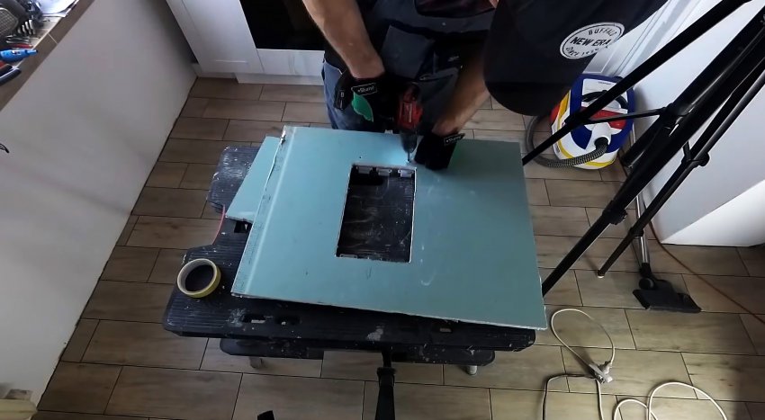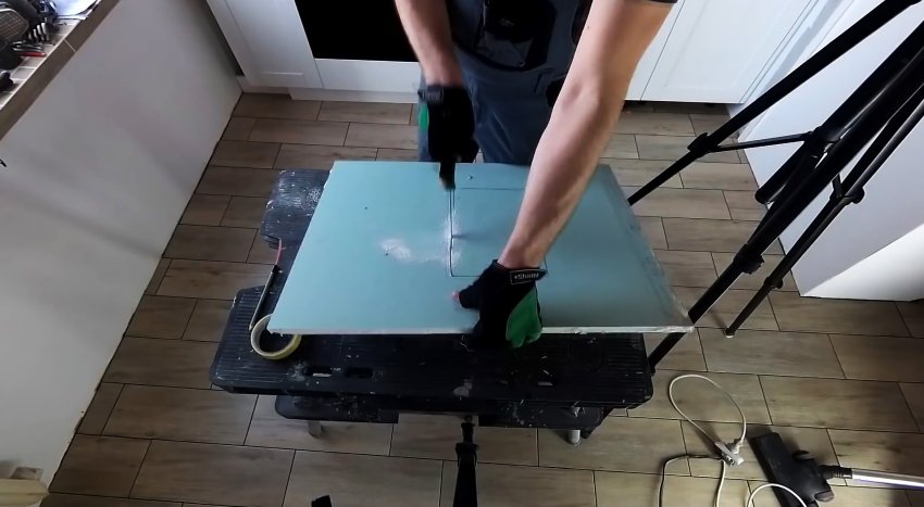 Далее остается поклеить плитку. На люк обязательно клеится отдельная плитка, не связанная с остальным основанием, поэтому его можно будет легко снимать.