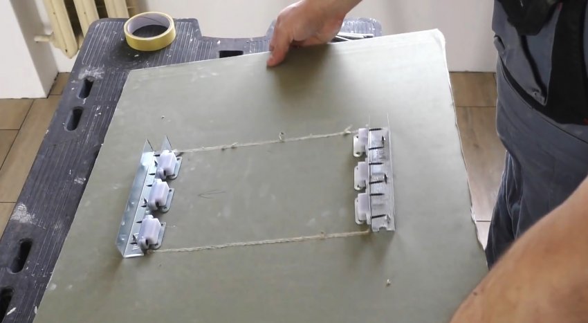 Профили с магнитами прикручиваются к экрану с обратной стороны так, чтобы магниты находились в проеме.