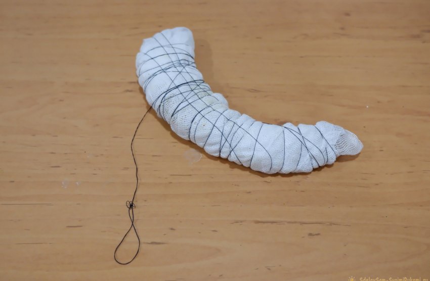 4. Обильно посыпаем специями, заворачиваем в марлю, перевязываем нитками.