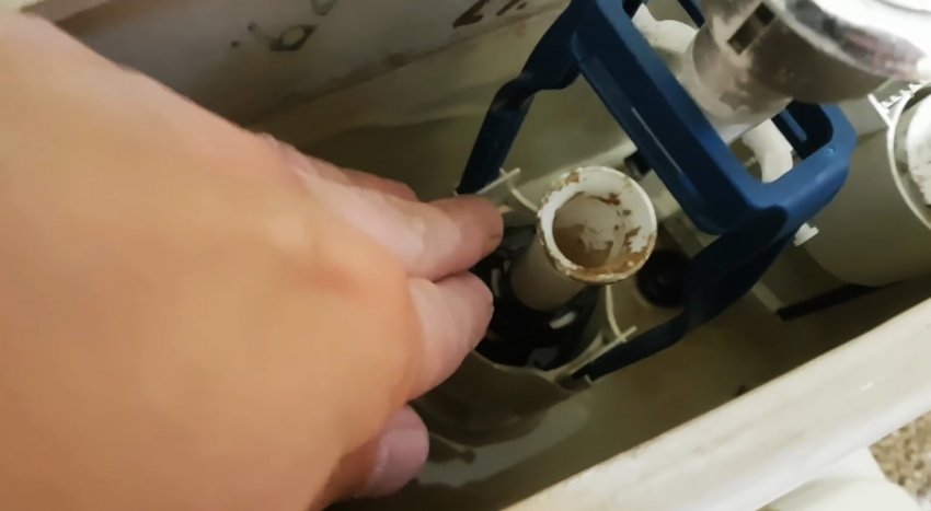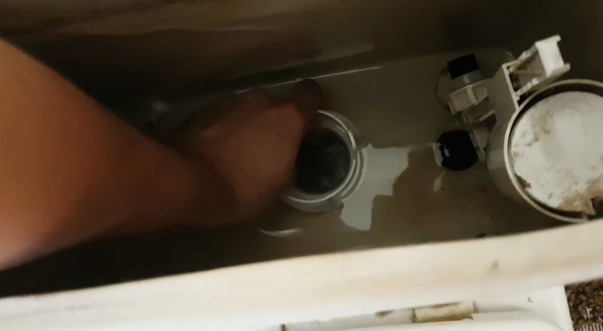 Также необходимо выкрутить из бачка пластиковое крепление, в котором она фиксируется. Под ним прочищается керамика от налета.