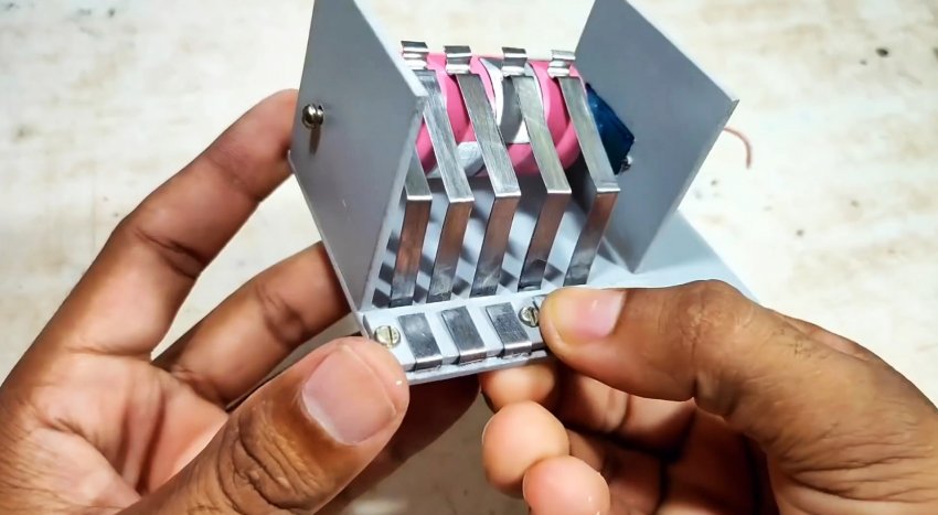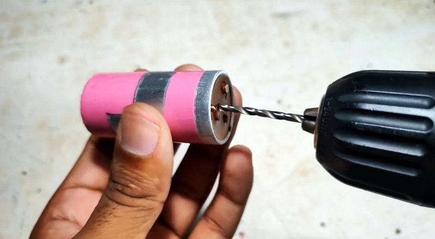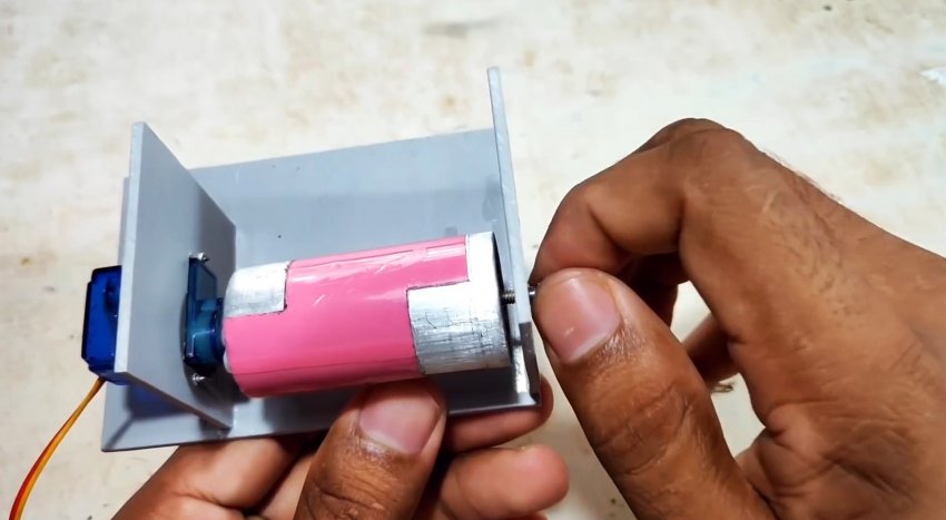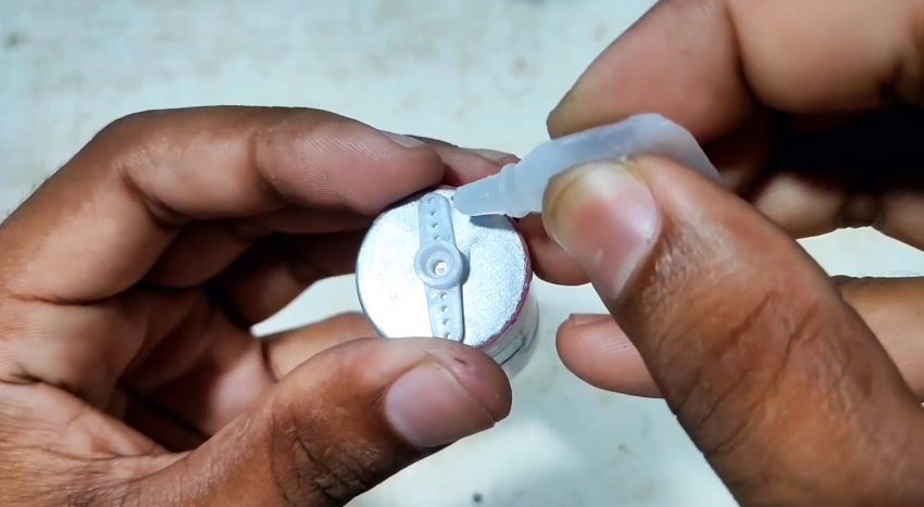 В центр конденсатора напротив приклеенного шкива вкручивается винт. Нужно добиться соосности. Затем двигатель и барабан закрепляются на станину.