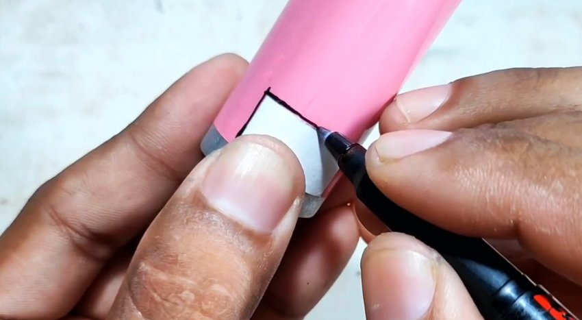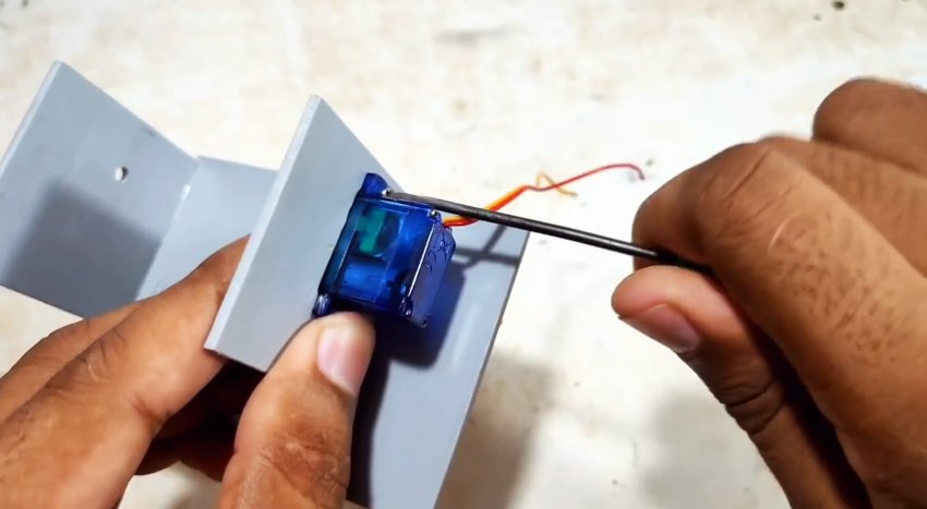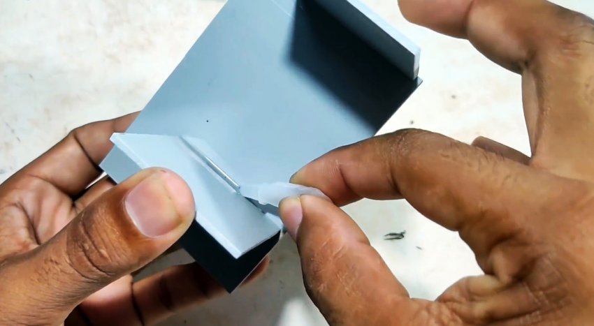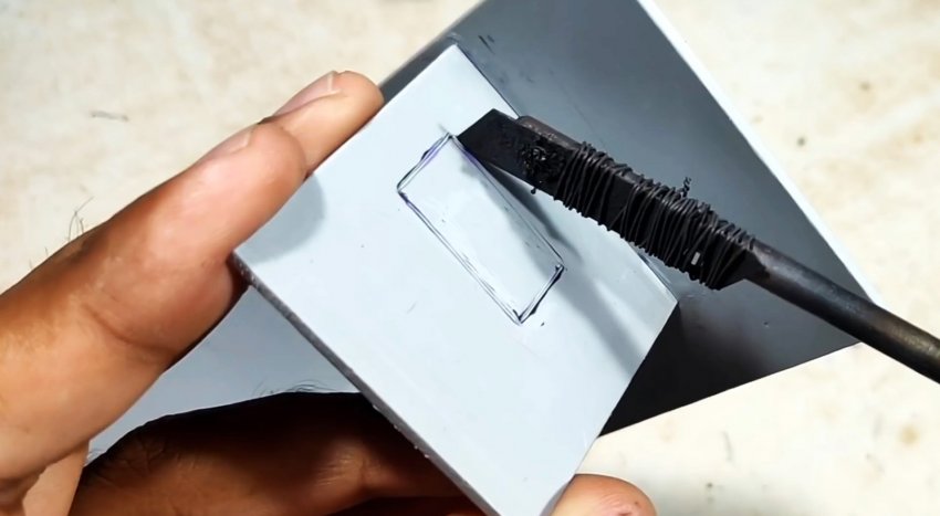 Затем из листового пластика склеивается П-образный корпус устройства.