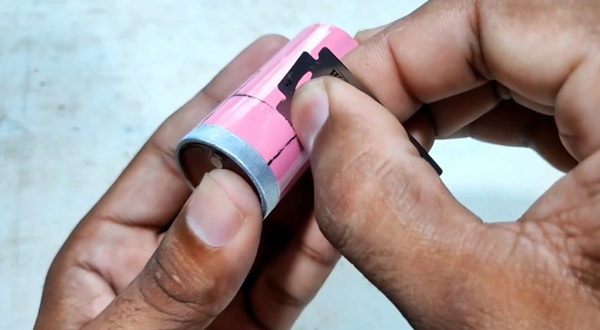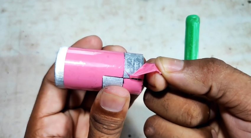 Из бумаги вырезается шаблон, по которому нужно разместить изолированный конденсатор, и оголить его поверхность. Каждый такой открытый островок будет замыкать отдельную гирлянду, в результате чего та сможет гореть короткое время. Конденсатор разделяется по окружности на количество дорожек, равное количеству гирлянд для подсоединения. На каждой из них вырезаете такой островок, но не напротив друг друга.