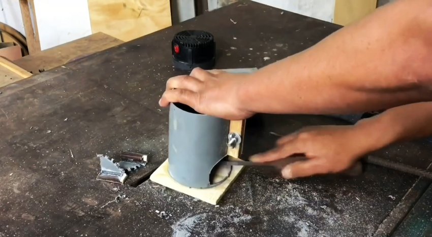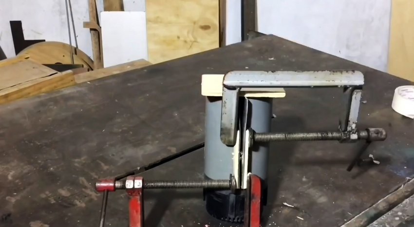 После этого нужно сделать крепление фрезера из отрезка канализационной трубы по типу хомута. Для этого труба распускается вдоль, греется, и ее края выгибаются наружу.