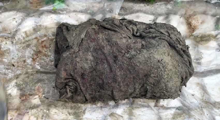 Затем необходимо замотать пакет с бутылками в это цементное одеяло. Остаток раствора выливается сверху.