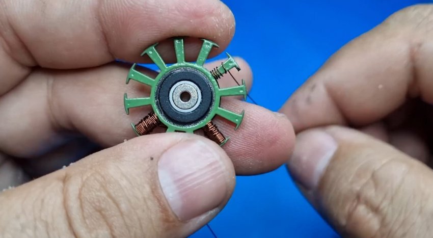 Из вскрытого моторчика вынимается сердечник с обмоткой. После этого нужно удалить намотанную на него проволоку. Она больше не потребуется, поэтому особая аккуратность не нужна.