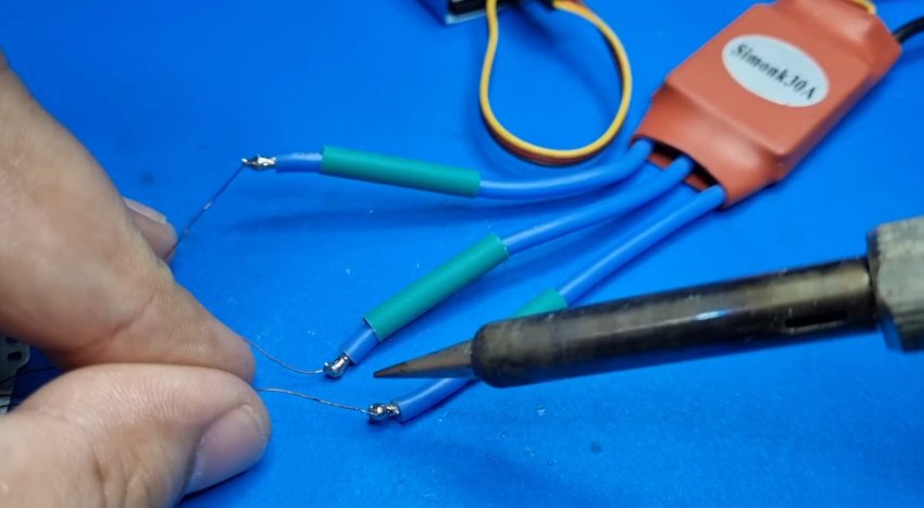 К оставшимся свободными трем концам обмотки припаивается регулятор скорости.