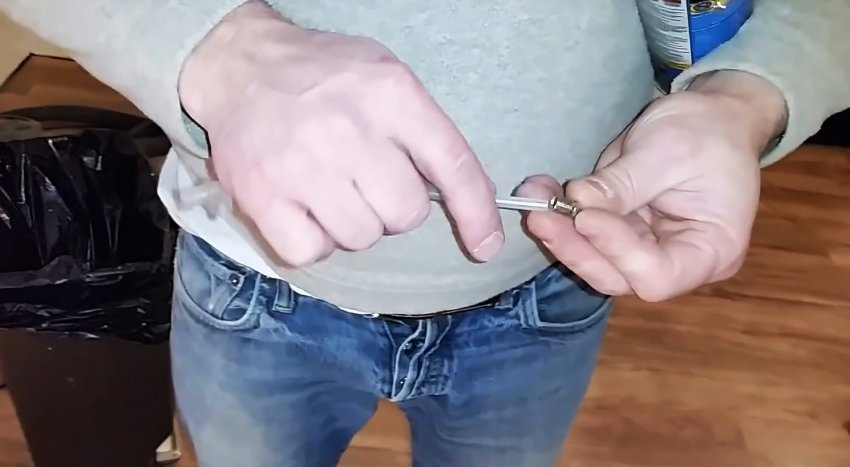 Суть метода заключается в задувании монтажной пены в места, где пол проминается. Она расширится, и станет плотной, за счет чего компенсирует погрешности основания. Для этого подойдет пена с небольшим расширением. На конец ее трубки нужно установить иглу для накачки мячей. Перед этим ту потребуется укоротить, чтобы удалить часть с боковым отверстием.