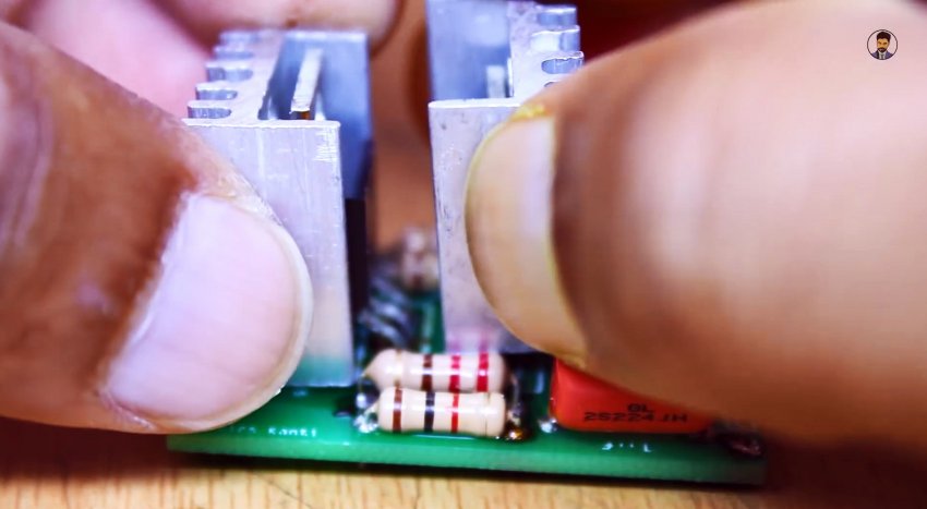 Полевые транзисторы устанавливаются миниатюрные радиаторы.