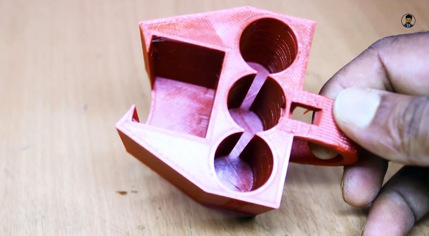 Затем нужно изготовить держатель корпус чайника из диэлектрического материала. Лучше всего распечатать его на 3D принтере. В нем следует предусмотреть ручку, места для аккумуляторов, платы с компонентами и выключателя.