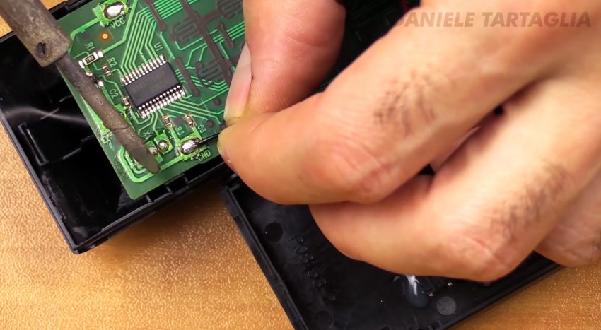 В нижней части пульта, свободной от кнопок, просверлим отварите под тактовую кнопку.