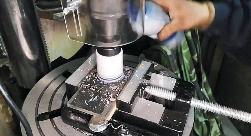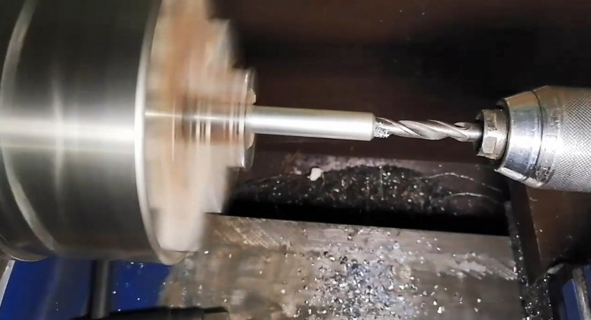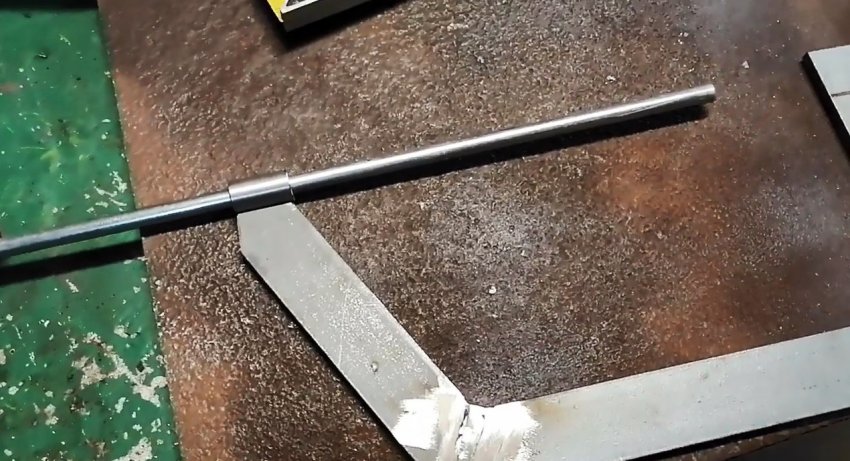 После этого нужно просверлить пруток М12 сверлом 8 мм, чтобы сделать 2 втулки под шток. Биение сверла в этом случае только приветствуется, так как в них без проблем должен скользить пруток 8 мм.