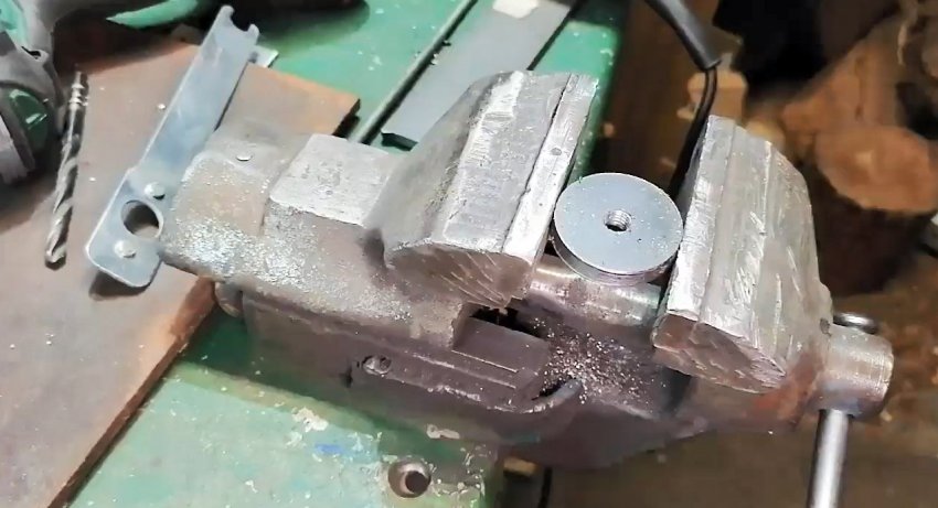 Из листовой стали высверливаются с помощью корончатого сверла 2 шайбы.