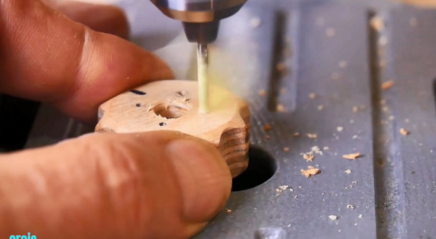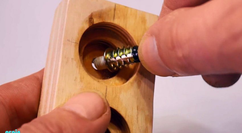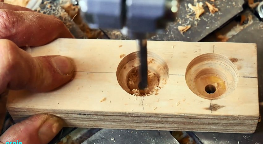 Затем оно углубляется сверлом 18 мм еще на 7 мм. В центре форма просверливаете насквозь сверлом равным диаметру болта для закручивания гайки.