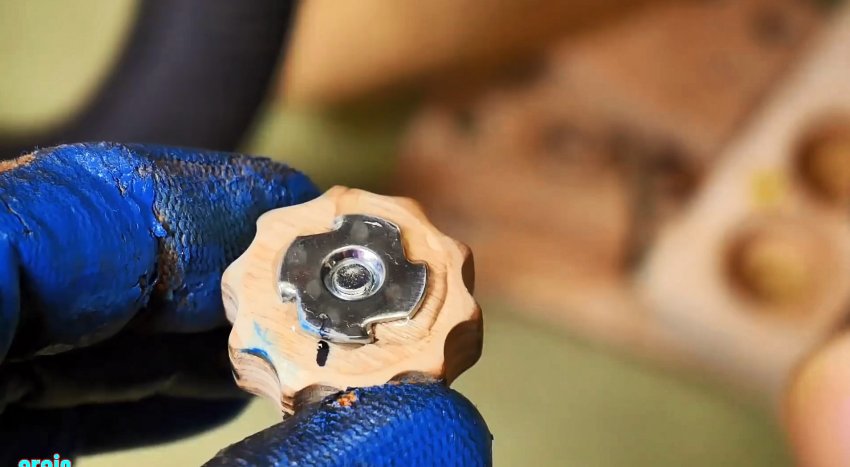 В завершение остается впрессовать в заготовку мебельную упорную гайку.