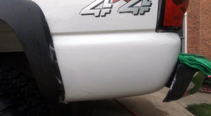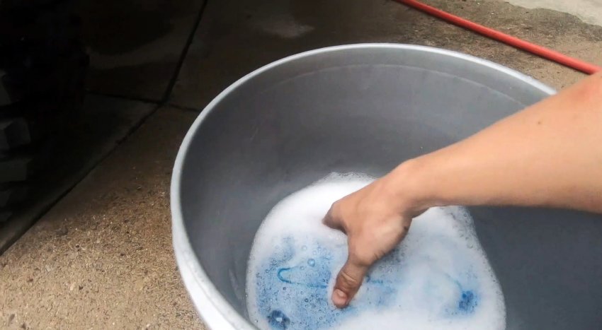 После удаления битума часть кузова, покрытую WD-40, необходимо вымыть водой с моющим средством для посуды.